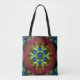 Bolsa Tote Flor Verde Azul e Vermelho, Flor Mandala Psicodéli