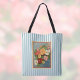 Bolsa Tote Floral Begonias Pink 1902 Seed Packet Blue Stripes