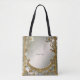 Bela Bolsa Tote Floral Branca com Adornos Dourados