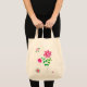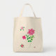 Saco de tortas de cor natural com um bonito design floral rosa e verde de uma colagem de papel pintada à mão por Judy Adamson.