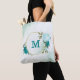 Bela bolsa tote com flores azul turquesa e claro e folhas verdes