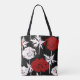 Bolsa Tote Flores brancas e vermelhas a preto.