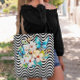 Bolsa Tote Flores e Borboletas Escuras e Brancas