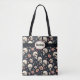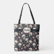 Flores cor-de-rosa e brancas, com crânios, fazem uma bolsa de tote de Gótico adorável para o Halloween, ou a qualquer momento.