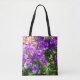 Bolsa Tote Flores Phlox roxas num saco de toques