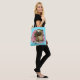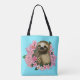 Uma preguiça bonita sentada entre flores cor-de-rosa contra um pano de fundo azul