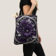 Flores roxas escuras com folhagem prateada, numa moldura gótica prateada, num fundo preto cria uma bela bolsa de tote com uma estética decididamente Gótico. Bonito, romântico escuro, perfeito para casa, escritório, escola ou compro.