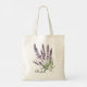 Saco branco e botânico elegante de tota floral com buquê aquoso de flores lavandas no cesto rústico. Você pode personalizar adicionando nomes. Esta bolsa de tote de lavanda será perfeita como um presente personalizado.