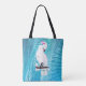 Esta bolsa de tota apresenta uma linda e branca cockatoo entre as folhas tropicais de palma verde.