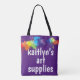 Carregar-todo para seu artista de brotamento novo. Saco do viagem para fontes da arte. Aperfeiçoe para as viagens por estrada, uma visita à casa da avó, ou para manter apenas em casa suas fontes favoritas da arte na mão. Personalize o texto com nome do seu artista, ou mude o texto inteiro, como desejado. Por todo o lado no impressão. Projete como mostrado é um divertimento o bolsa roxo colorido. Seleto PERSONALIZE, e mude o fundo a toda a cor desejada. Seja certo mudar o fundo na parte dianteira e na parte traseira do bolsa!