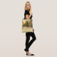 Uma bolsa de tote com uma bela fotografia da natureza. Um caminho de inverno isolado com neve alta cobriu pinheiros. Um matiz ouro cria uma sensação mágica a esta foto.