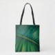 Um saco de tote com uma foto próxima de uma folha tropical verde mostrando algumas frentes vibrantes de palma.