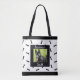 Adicione o nome e a foto do seu cão a esta sacola feita sob encomenda. Leve em torno dos brinquedos, meds, coberturas e o que quer que suas necessidades do animal de estimação quando ir! Teste padrão preto e branco dos ossos de cão.