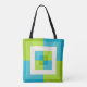 Esta imagem é um desenho abstrato geométrico com camadas quadradas concêntricas que espiralam para dentro. Os quadrados são feitos de cores ousadas e contrastantes: amarelo, laranja, vermelho, verde-oliva e roxo profundo. Cada quadrante alterna de cor, dando ao design um efeito dinâmico e quase óptico semelhante a ilusão. A combinação de tons quentes e legal cria um sentido de profundidade e equilíbrio.