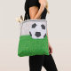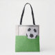 Um futebol e gol na grama verde. Este design parece realmente eficaz nesta Tote Bag