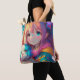 Linda menina Anime com dois olhos coloridos diferentes segurando um filhote adorável. As cores utilizadas são cor-de-rosa, laranja, azul, roxo e azul. Arte "Ai" de crianças bonitas e coloridas.