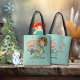 Um ursinho de pelúcia doce e uma garota de mãos dadas é um belo gráfico nesta bolsa de tote sobre um belo fundo azul de cor. Você também encontrará um gráfico com um pequeno ursinho de pelúcia e pássaros nas costas. Use este saco bonito para carregar seus presentes de aniversário ou feriados, ou itens de festa ou trazer seus brinquedos para o playground.