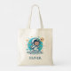 Saco de tote personalizado com um pequeno astronauta bonitinho na lua com um planeta sorridente e estrelas.