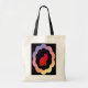 Esta design foi feita com o Photoshop. O fundo é um quadro preto com um recorte que mostra um arco-íris de cores. Um círculo preto com borda recortada mostra um gato desenhado com uma tonalidade vermelha. Este bolsa pode ser usado para tantas atividades diferentes. Disponível em alças coloridas sortidas.
