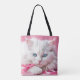 Bolsa Tote Gato Branco Com Fitas Rosa