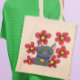 Bolsa Tote Gato cinza com flores personaliza com sua própria