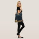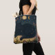 Um gato preto mágico cercado por elementos celestes, cristais, folhas e mariposas.