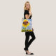 Girassol vestindo óculos de sol rosa no campo de verão.