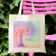 Girly Rainbow Espalha Monograma Nome Tote Bag. Este saco bonito é decorado em ambos os lados com uma árvore e fundo em cores arco-íris com estrelas cintilantes falsas. Você pode personalizá-lo com um nome e um monograma. Árvore Mosaica Original © Michele Davies.