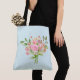 Flores do tipo aquarela, com tulipas e folhagem cor-de-rosa, púrpura e pincelada, sobre fundo transparente, azul-céu usado na amostra.