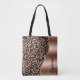 Bolsa Tote Glam Leopard Spots Rosa Dourado Nome Metálico Negr