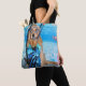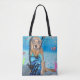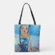 Esta sacola caracteriza um golden retriever vestida como um snorkeler que veste aletas no oceano.