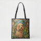 Saco de tota de excelente com um cão Goldendoodle no estilo de uma janela de vidro manchado.