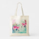 Christian Tote bag mostra uma bela aquarela floral com flores cor-de-rosa num fundo azul. Ele apresenta o amado Hino Cristão, "Graça Incrível, quão doce o som que salvou um miserável como eu! Uma vez eu estava perdido, mas agora eu me encontrei, era cego, mas agora eu vejo."
