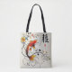 "A elegância e as bençãos do Carregar com a bolsa de tote Graceful Fortune, com um impressionante peixe koi de ouro laranja rodeado por delicadas vinhas pretas, flores vibrantes e o 福 chinês para boa sorte. Este bolsa leve, porém durável, é perfeito para tarefas diárias, comprar ou como acessório na moda para a temporada de Ano Novo Lunar. Celebrar prosperidade e elegância aonde quer que vá."