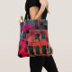 Trabalho de arte de abstrato, colorido e moderno estilo urbano, num estilo grafite vandalista, com rabiscos e pinturas sobre uma representação colorida de edifícios urbanos pelo artista digital Shelli Fitzpatrick