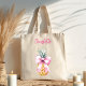 Bolsa Tote Grande Ananás tropical, cor-de-rosa, arco