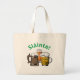 Sláinte Beers Large Tote Bag, mostrando um desenho animado de três cervejas e Sláinte! (Saúde) em texto curvo no topo. Ideal para presentes no dia do pai da Rua, para mercadorias, para bolsas, bolsas de apresentação, festivais de cerveja, etc. Itens correspondentes estão disponíveis no DIA DE SÃO PATRÍCIO e nas Coleções CHEERS & BEERS por Designs Bereanos.