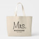 O roteiro de caligrafia preto moderno e casual "Sra." da mochila de tote de casamento feminina apresenta texto personalizado que pode ser personalizado com o novo sobrenome casado da noiva e a data do casamento. Acessório perfeito para a lua de mel e além!