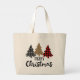 Bolsa Tote Grande Feliz Natal Xadrez Árvores de Natal