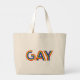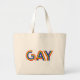 Este trabalho de arte apresenta a palavra Gay em uma fonte colorida do arco-íris.