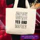 Diversão IMPROV Tote Bag com uma redação que diz IMPROV IMPROV YES AND IMPROV. Ideal para pessoas que adoram teatro improvisado ou que são comediantes de stand-up. Design apresenta uma tipografia ousada e sólida. "Sim E" é a principal regra de improviso. Presentes correspondentes também disponíveis.