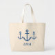 Bolsa Tote Grande Monograma de Âncoras Náuticas Simples Azul e Branc
