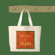 Este saco de tote grande e forte foi projetado para um vegan comprar. Tem as palavras - O futuro é VEGAN - e é decorado com uma borda de legumes coloridos num fundo laranja de abóbora com uma borda verde.