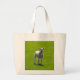 Uma fotografia de um cordeiro branco num campo verde. Levado na Grã-Bretanha.