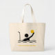 Silhueta preta do jogador de polo de água, grande saco de tote exibindo um ícone de pictograma minimalista de uma silhueta preta de um jogador de água segurando sua bola em frente ao gol e seu texto sobre fundo branco. Personalize-o e altere o texto com monograma, nome ou mensagem. O presente perfeito para o atleta ou amante do polo aquático em sua vida.