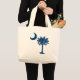 A árvore do palmetto com a lua crescente é o símbolo de South Carolina. Este design azul da lua do palmetto está disponível como uma bolsa de praia, ou uma seleção de outras sacolas.