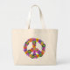 Um sinal de paz floral de tons cor-de-rosa, turquesa, amarelo, laranja, roxo, verde e preto enfeita este saco de totas de tendências. Note-se que, devido às pétalas pretas, este design não deve ser colocado sobre fundo preto.