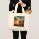 "Stunning Tropical Sunset II", por Carolee Vitaletti. Possui um pôr do sol contra árvores e água na praia.