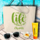 Faça uma declaração ou dê como presente divertido, esta bolsa de tote de cor natural apresenta seu nome e "a vida Piscina das praias são salgadas" em letra de verde limão chic. CORRESPONDENTE a itens na nossa coleção.