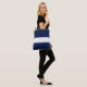Este elegante design modernista apresenta uma faixa náutica branca, sem fronteiras, que se mistura perfeitamente nas suas faixas azuis marinho companheiras acima e abaixo.